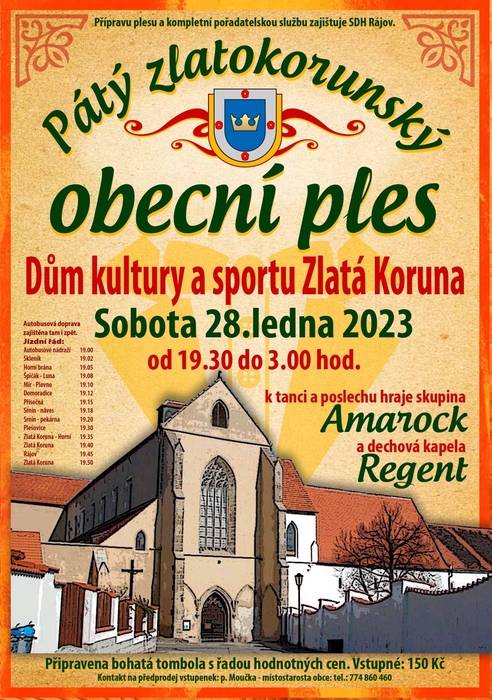 SOBOTA 28. LEDNA 2023 OD 19.30 HODIN V DOMĚ KULTURY A SPORTU ZLATÁ KORUNA