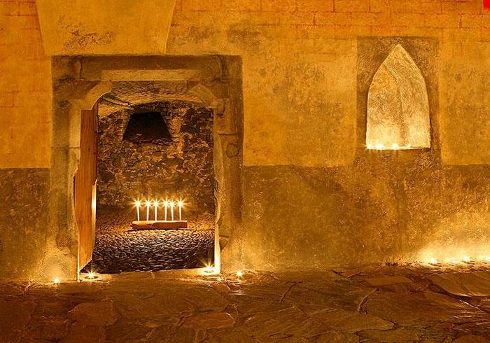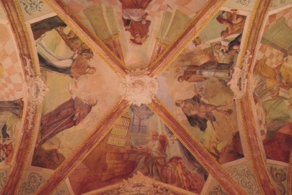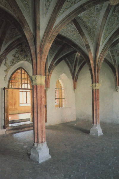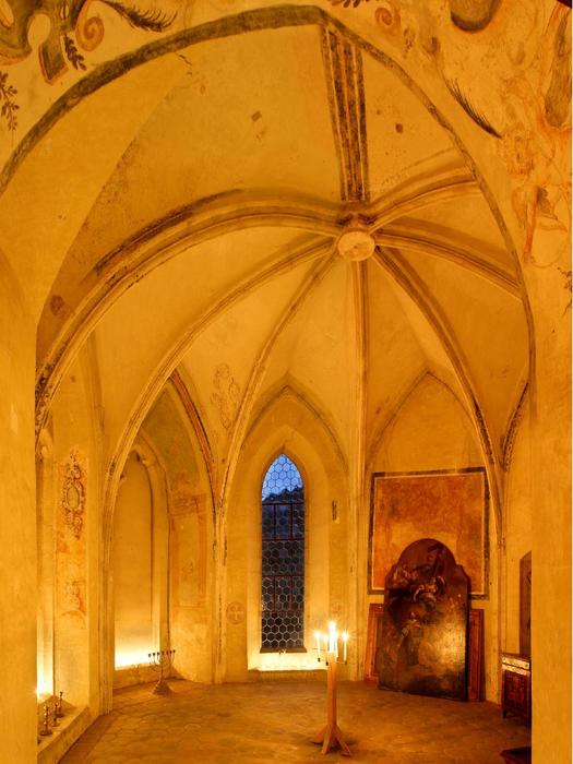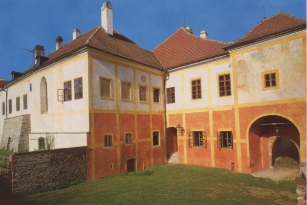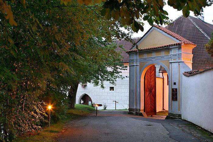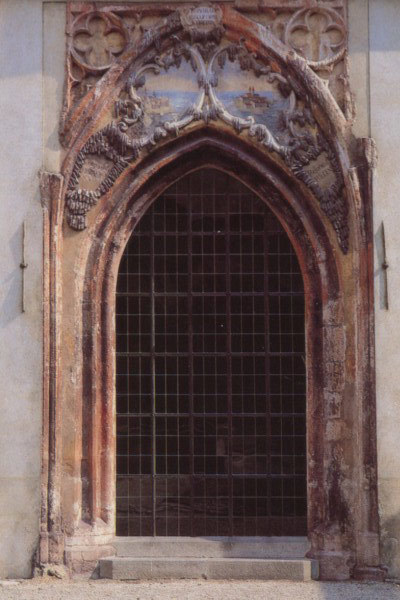 Rajský dvůr.Pohled na portál bývalé studniční kaple