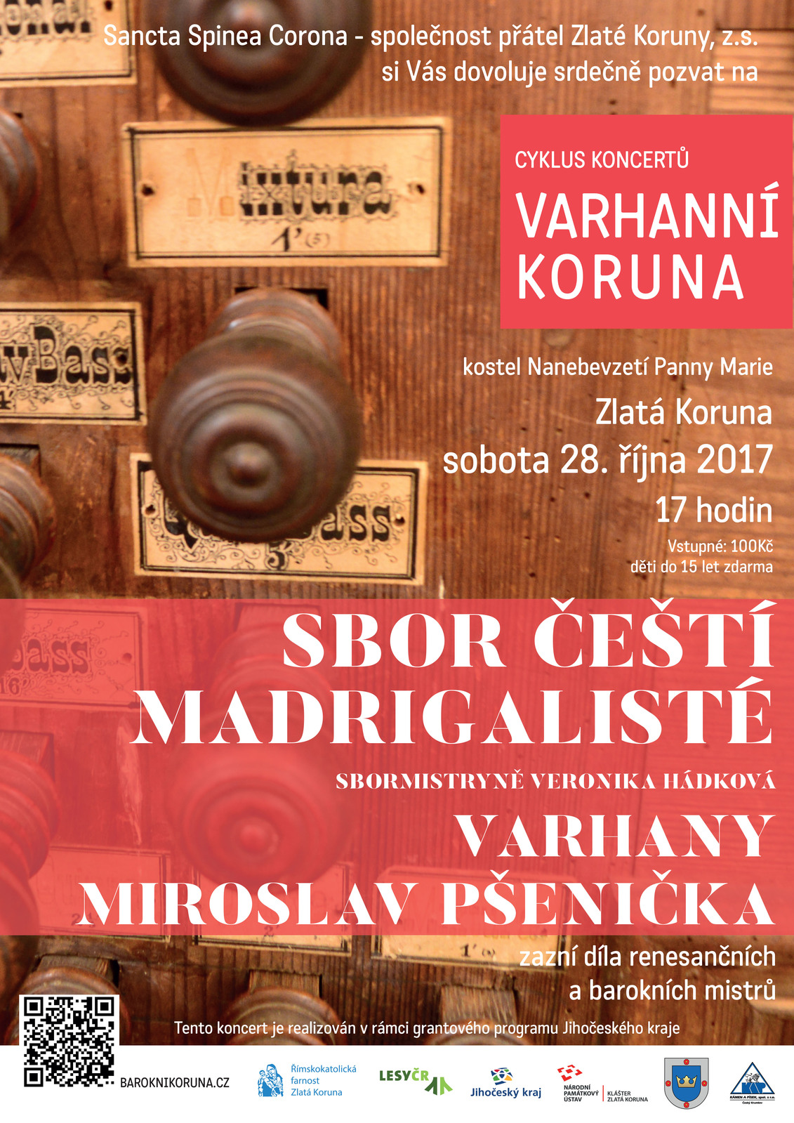 Dovolujeme si vás tímto pozvat na varhanní koncert, který se koná v pondělí 28.8.2017 od 20:00 hod v klášterním kostele Nanebevzetí Panny Marie ve Zlaté Koruně. Vstupné je dobrovolné.