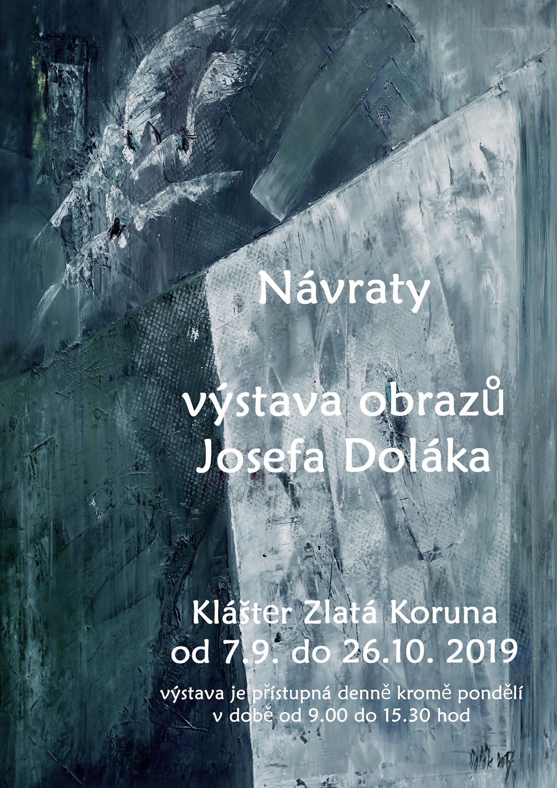 Výstava obrazů rodáka z Plešovic ve výstavních prostorech opatství v blízkosti pokladny. Vstup zdarma, otevřeno denně mimo pondělí od 9.00 do 15.30 hodin.