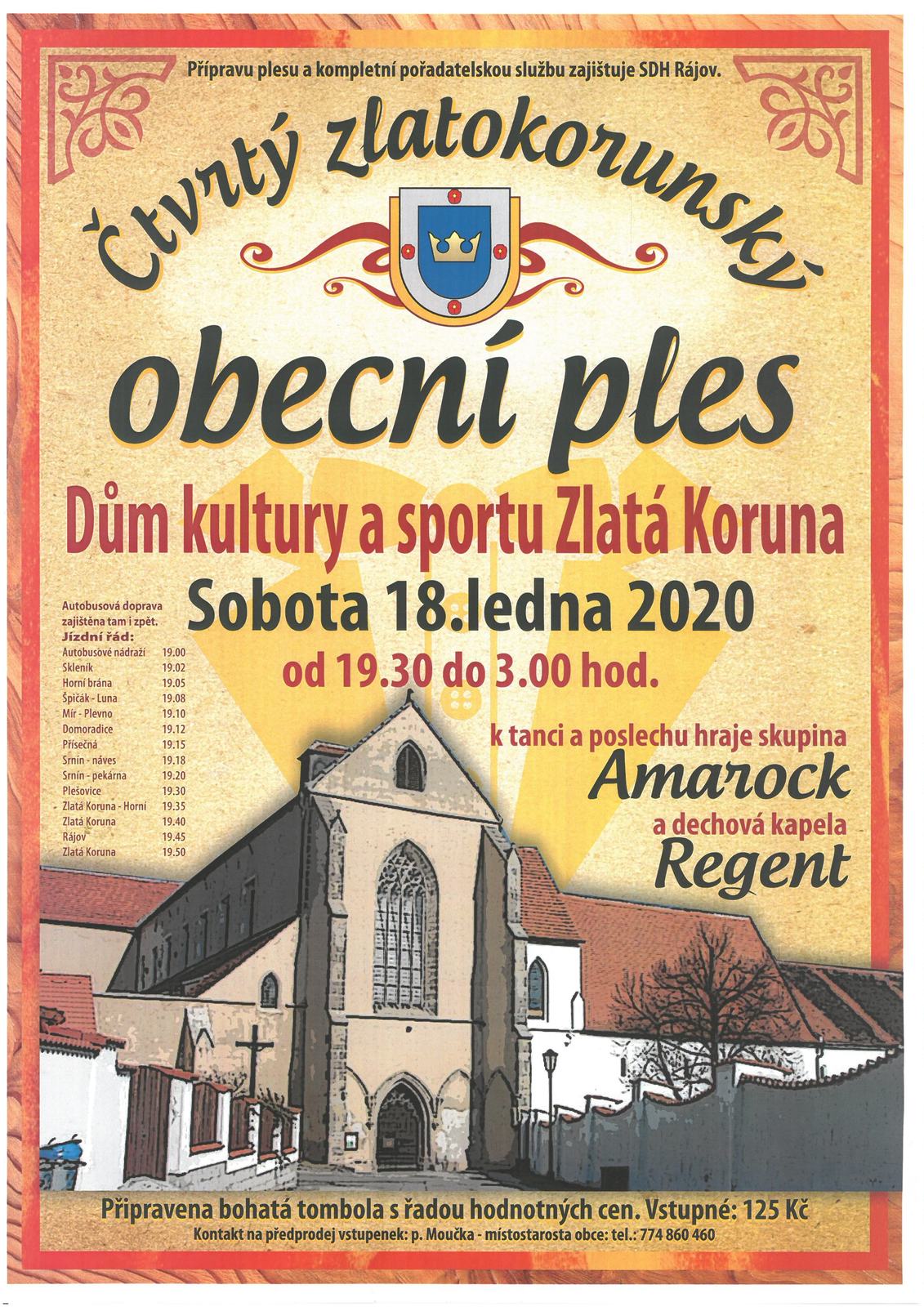 Dárkové předměty do tomboly můžete předávat na Obecním úřadě ve Zlaté Koruně (pondělí a středa od 7.00 do 17.00 hodin) nebo v Hostinci Na Kovárně v Rájově v pátek 17.1. od 18.00 hodin. Předem za ně děkujeme.