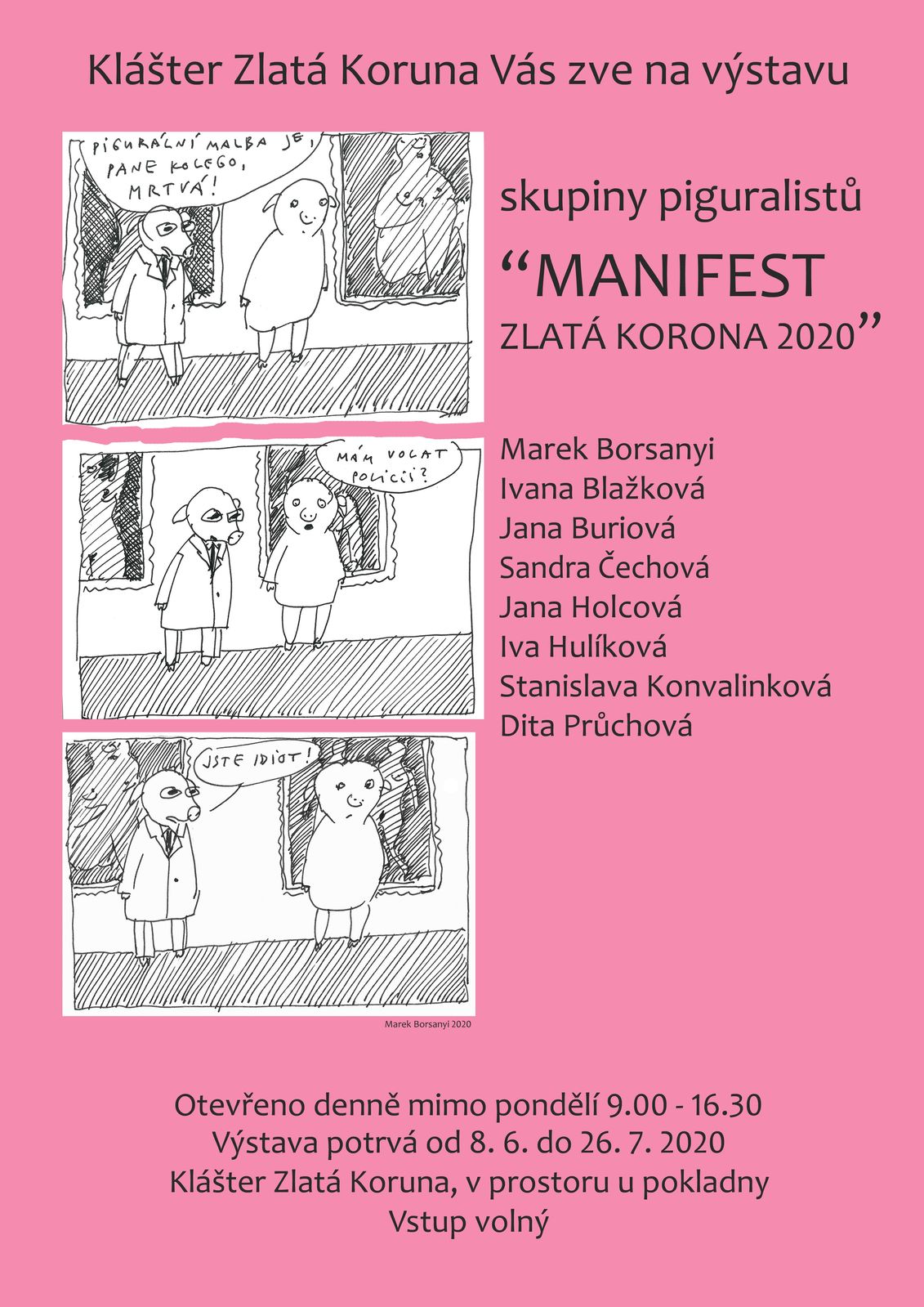 Otevřeno denně mimo pondělí ve výstavních prostorech u pokladny od 9:00 do 16:30 hodin, vstup zdarma. Plakát.