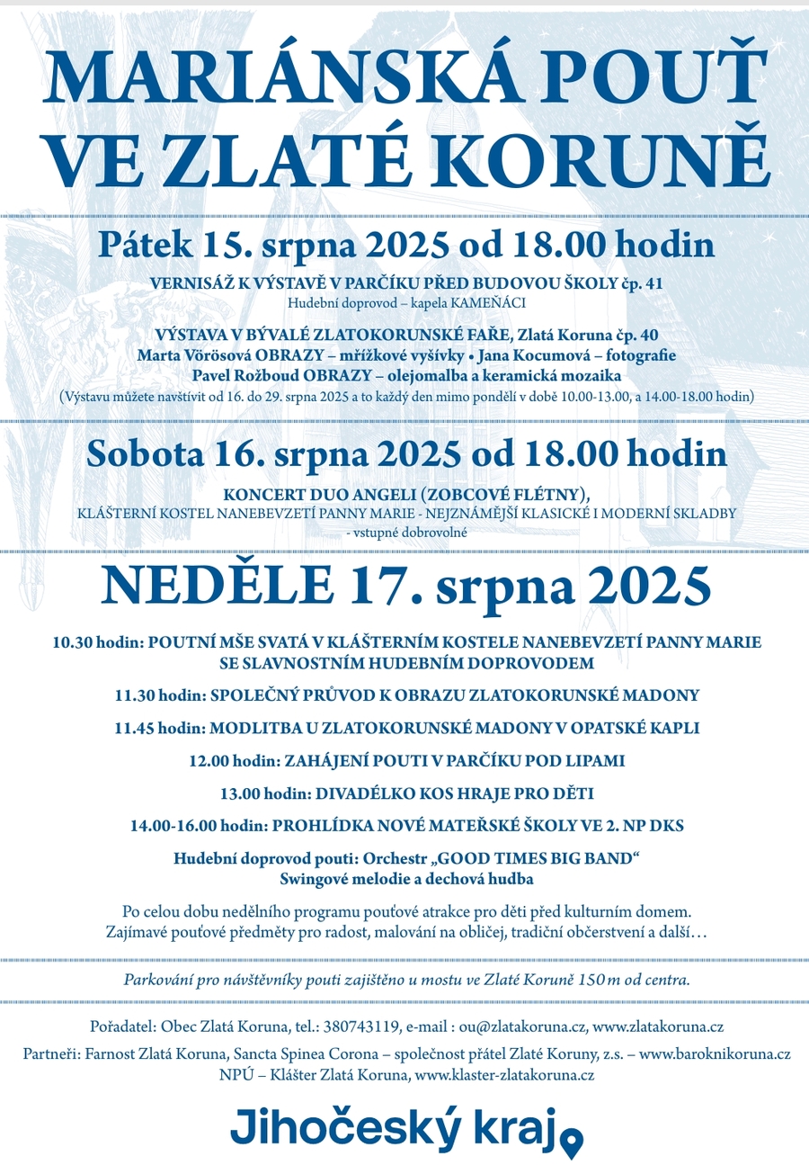 Pořadatel: Obec Zlatá Koruna, tel.380743119, E-mail: ou@zlatakoruna.cz, www.zlatakoruna.cz